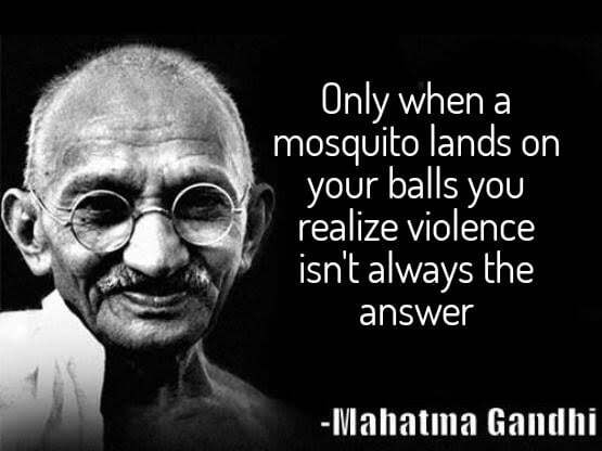 True. Before a mosquito landed on my balls, I was going apeshit violent on everything and everyone in my line of sight. Who knows what trail of destruction there would be had a mosquito not perched on my succulent testes