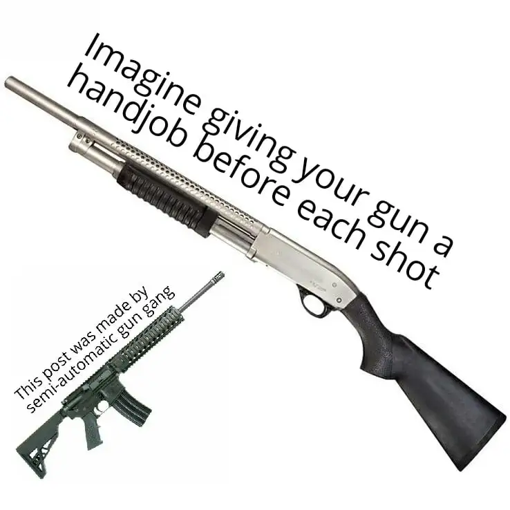minus-squaredohpaz42@lemmy.worldlinkfedilinkEnglisharrow-up5arrow-down1·edit-220 hours agoReminds me of an old joke: Q. Why is your mom like a shotgun? A. Because one pump and she’s ready to blow.