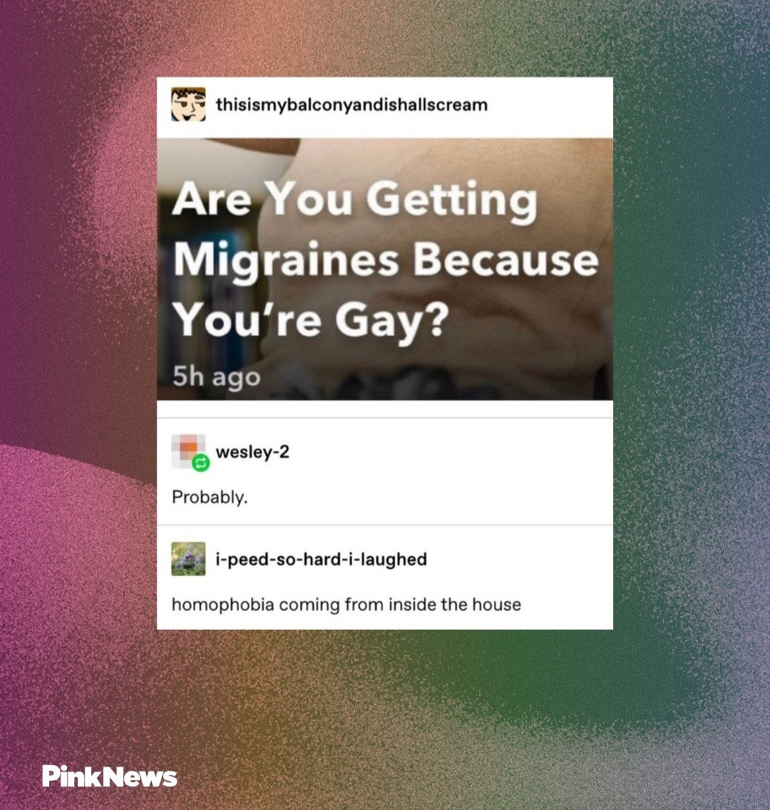So by that logic, every migraine sufferer is gay? Won’t my spouse be surprised…
