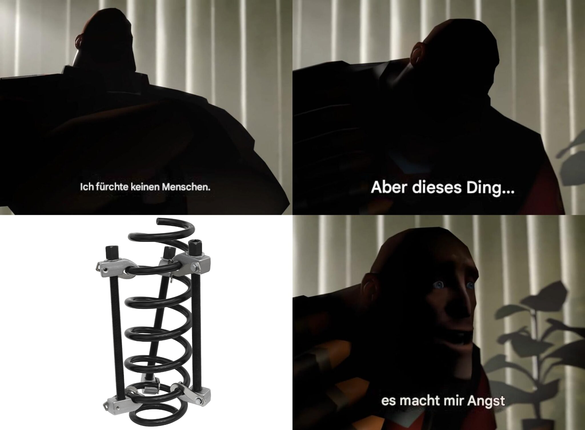 EDIT: Konkretisiert beruht die Angst auf der in Feder gespeicherten, potentiellen Energie, die sich um ungüstigsten Falle (z.B. Materialermüdung des Federvorspanners) rapide in kinetische Energie umwandelt.