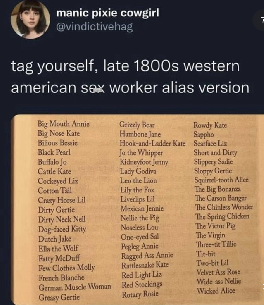 … modern day stipper/porn star names got nothin’ on these, goddamn.