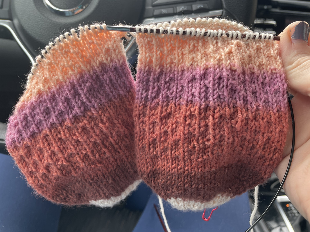 I’ve already started the pink socks pattern, which I posted earlier this week. I think once I turn the heels I might cast on the bottom left sweater and get a start on it while finishing the socks.