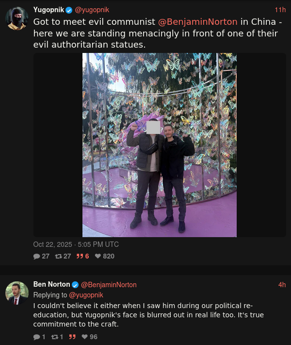 It says on Yugonik’s twitter that the China trip is scheduled to be 7 days long. The first photo he posted in Beijing was on October 16. His trip must be almost over now.
