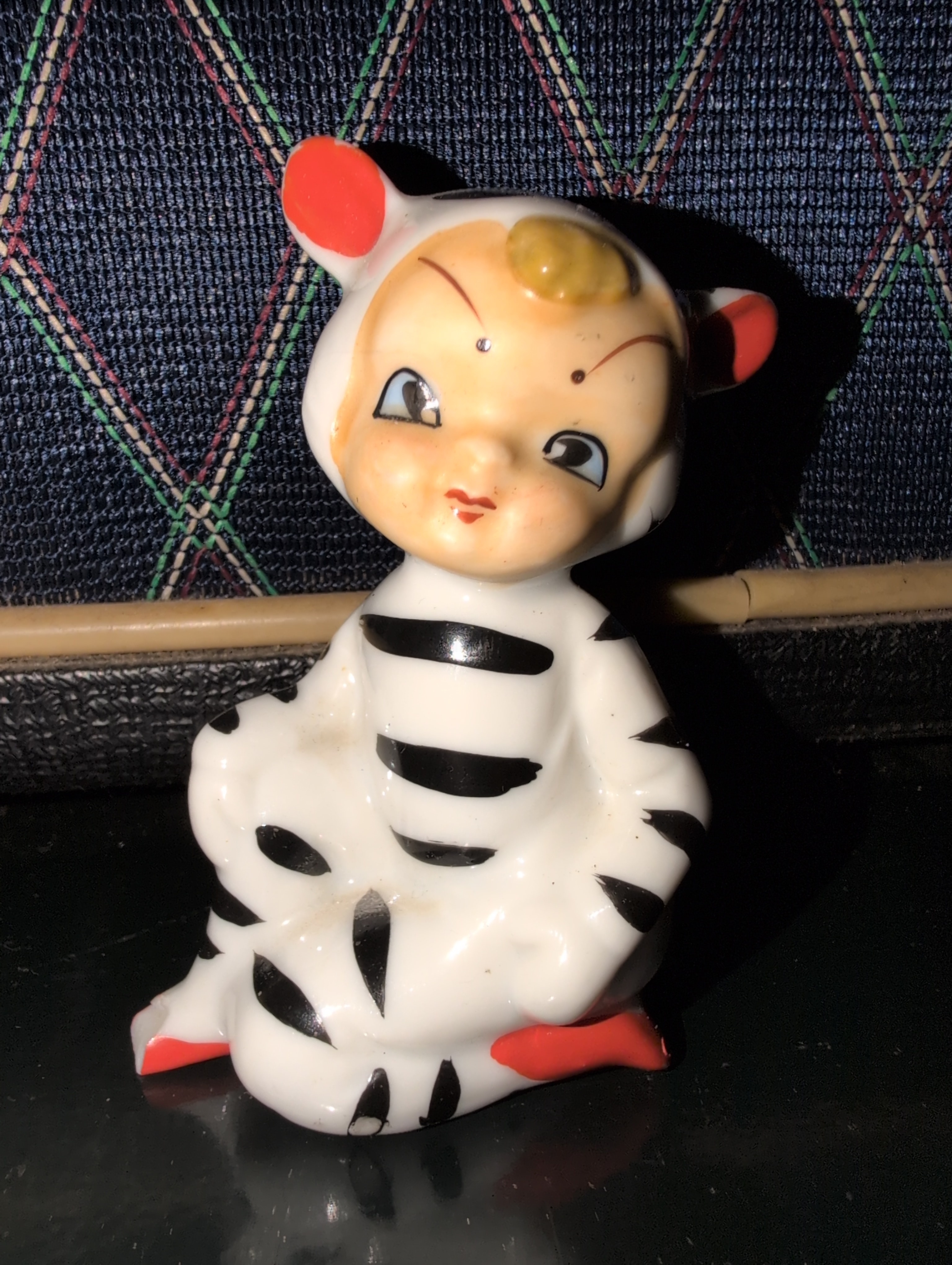 Found an Etsy listing: https://www.etsy.com/listing/1592716281/vintage-ceramic-pixie-figurines-zebra