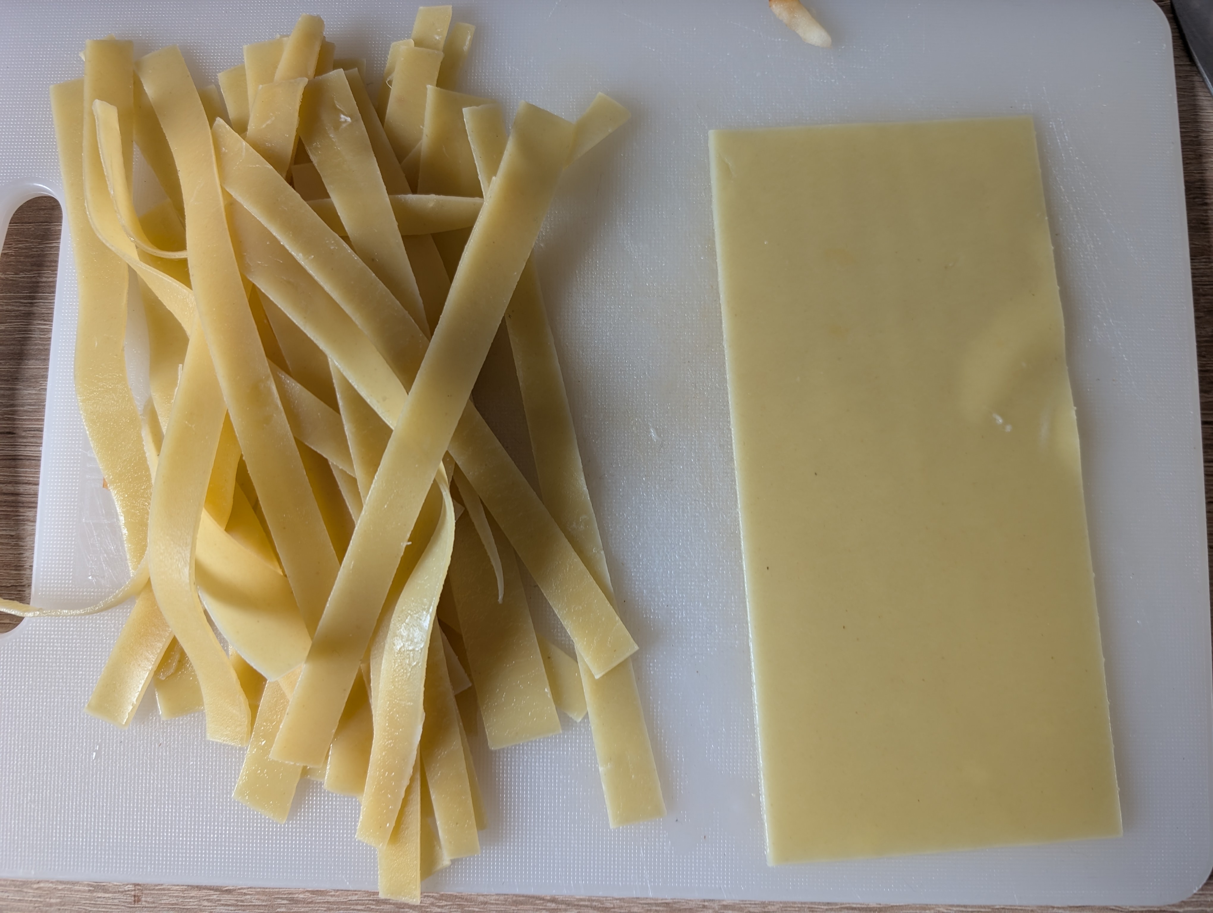 I had a few lasagna sheets left that were past the use by date and turned them into Linguine.
