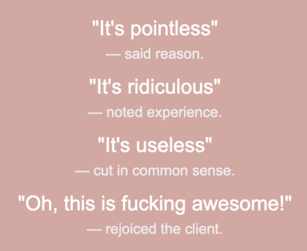 I think experience’s and common sense’s lines should be switched. Otherwise, great.