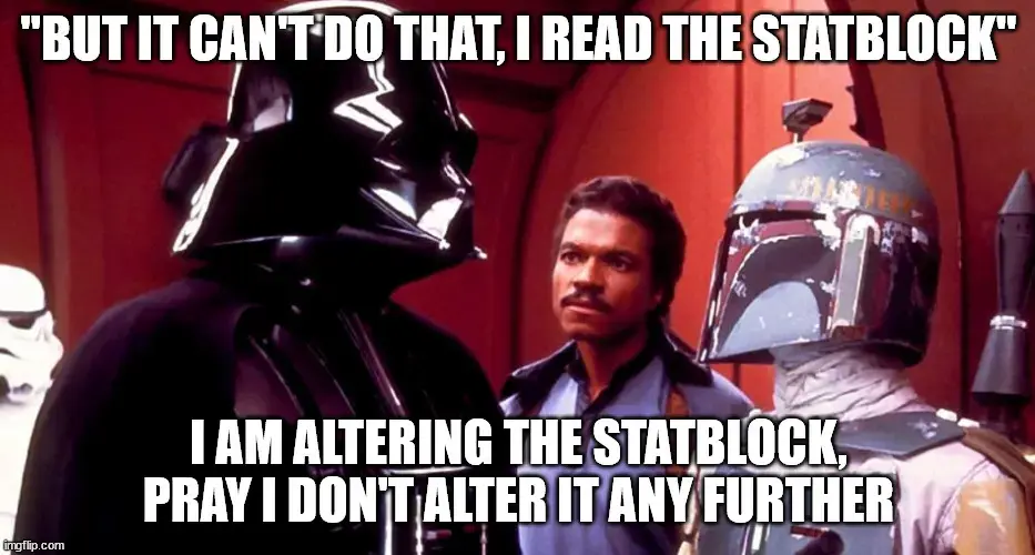 But maybe dnd crowd agrees that stat blocks are implicit part of the game and changing them is cheating idk