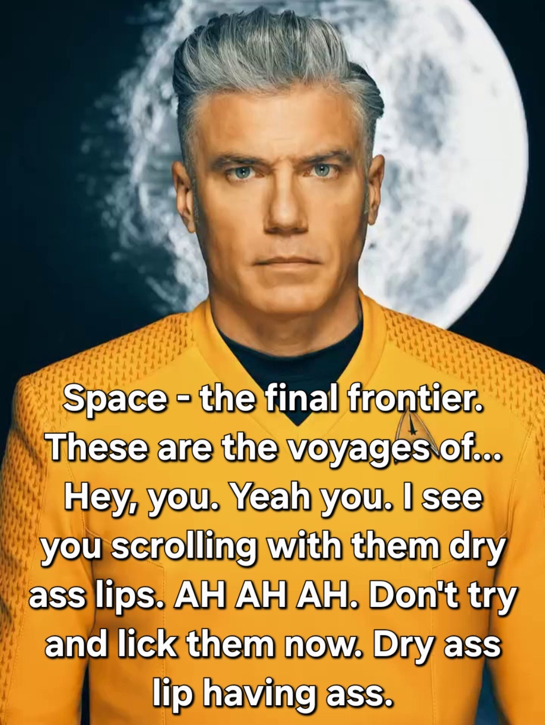 ummthatguy@lemmy.worldM to TenForward: Where Every Vulcan Knows Your Name@lemmy.worldEnglish · 14 days agoMoisturize me!lemmy.worldimagemessage-square17fedilinkarrow-up1114arrow-down120