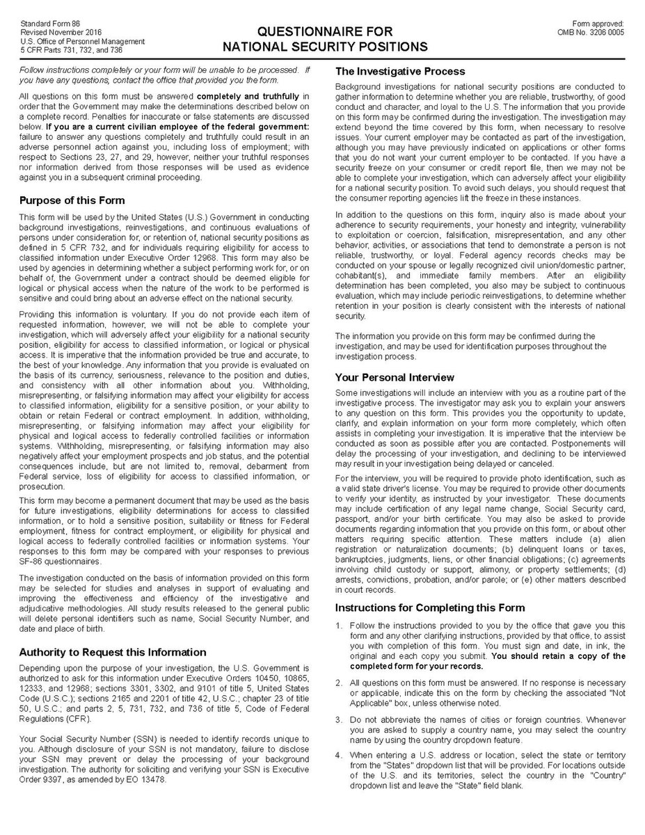 There are a lot of positions that don’t work directly for the government that still require an sf86. Many of them are considered critical workers or in many of the cases contractors have the funds sitting in the Treasury or with their company and continue to get paid even if there is a shutdown.