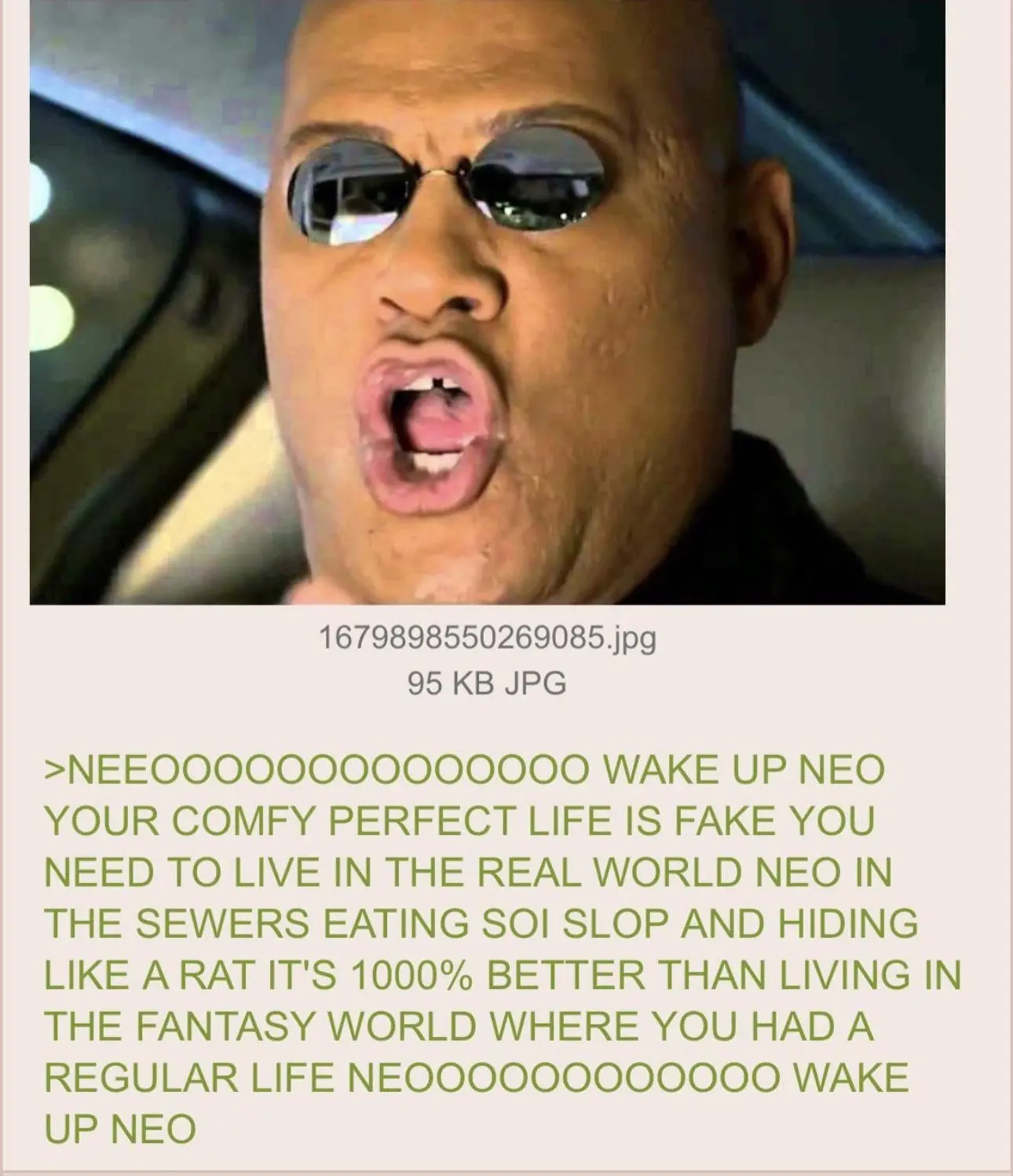 minus-squareNullPointerException@lemmy.calinkfedilinkarrow-up66·12 days agoMorpheus gave him a choice. But, of course, being a good marketer, he didn’t say how reality would be.