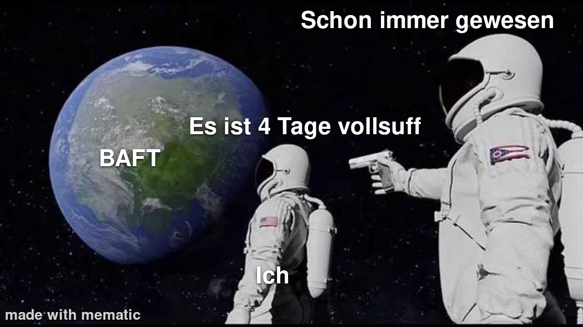 Die BAFT ist die Bundesagrarfachschaftentagung, welche aktuell wieder in Kiel ist. Ich bin ehrlich überrascht, wie unfassbar viel so einige Personen sich da einen rein saufen. Einer hat am Donnerstag (im vollsuff) seine Mutter angerufen, dass sie ihn doch abholen möge, obwohl er am anderen Ende von Deutschland war. Gestern waren einige dann trotz einer Wassertemperatur von vielleicht 10° kurz mal im Meer baden.