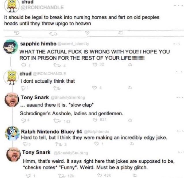I hate mfs who say checks notes jokes are supposed to be funny checks my superior notes humor is subjective, that whole jokes are supposed to be funny bit does not apply when it’s a tweet or any other public forum, at least one person will find it funny